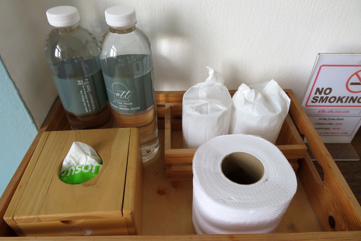 500mlくらいのミネラルウォーターが2本。これも、タイのホテルでは毎日提供されます。ホテルのロゴ入りというのはお金をかけている証拠ですね。