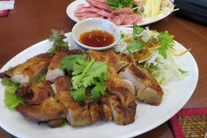 個人的にタイというかイサーン料理で最も好きなやつです。タレ、ナムチムがお店によっては辛くしてあったりしますけど、基本的にどこで食べても美味しいです。ビール、進みますよ。